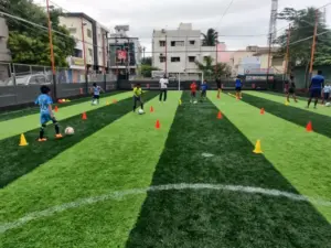 Badminton: - Non Marking Shoes compulsory for Badminton. Shoes must be worn after entering the facility. - Sports equipment available on rent: Rackets, Shoes. - Socks are compulsory for rented shoes. Please carry your own. - Barefoot play is strictly prohibited. - A maximum of 4 members per booking per badminton court is admissible. Football: - It is recommended but not compulsory to wear football studs while playing at the facility. - Metal studs are not allowed.
